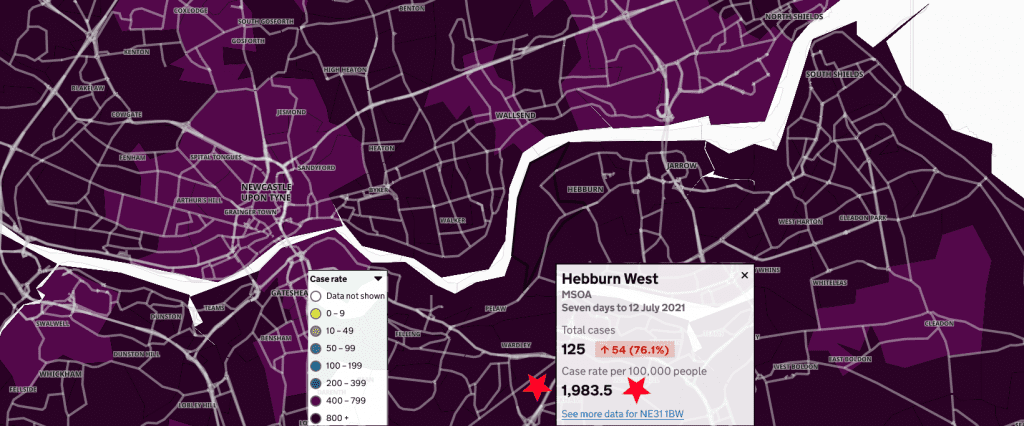 UK: Hebburn West in South Tyneside now at nearly 2,000 coronavirus cases per 100,000 people